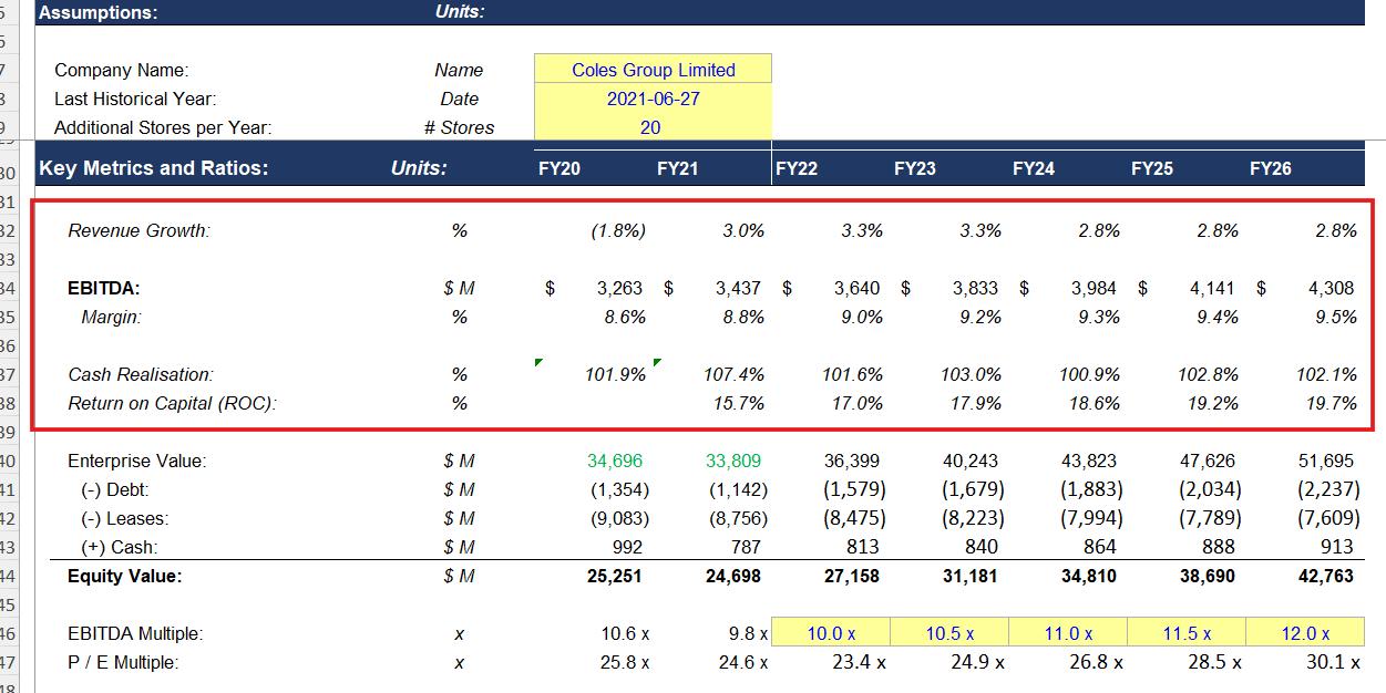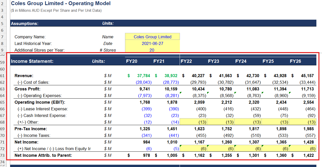 A comprehensive 3-statement financial model dissecting the FY21 performance of Coles Group. The study encompasses detailed historical analysis, operational driver forecasting, and full integration across the income statement, balance sheet, and cash flow, culminating in an enterprise valuation and sensitivity analysis.